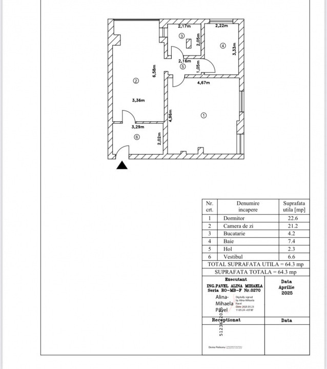 • Hol de trecere ce face legătura între zonele principale ale apartamentului