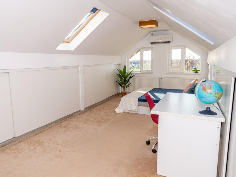 La mansardă, apartamentul beneficiază de un doilea dormitor extrem de generos, si de spații ample pentru depozitare, dressinguri plus spații tehnice ce nu sunt incluse în suprafața utilă interioară, dar care sporesc confortul locuinței.