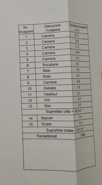 Suprafață totală: 115 mp, cu peste 104 mp utili interiori.