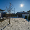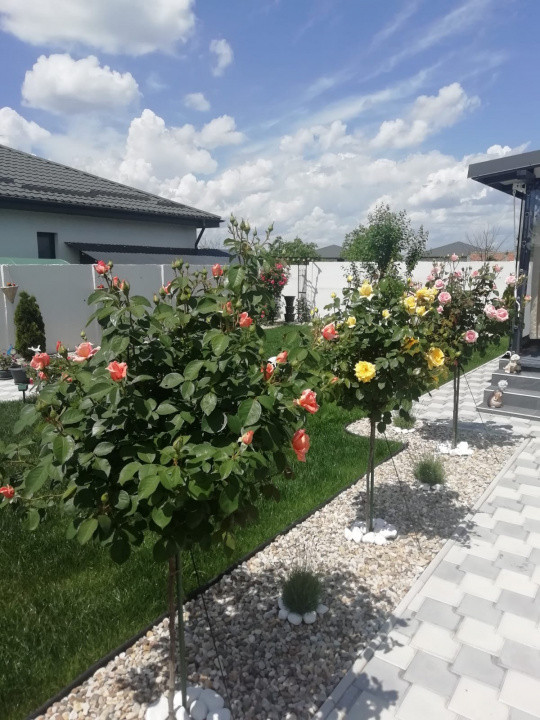 Curtea este matură, cu gazon, sistem de irigație și amenajare peisagistică modernă — un spațiu care invită la relaxare, joacă și timp petrecut în familie, într-un cadru intim și verde. In spatele curții si lipit de casa, vom regăsi si o magazie cu scop de depozitare.