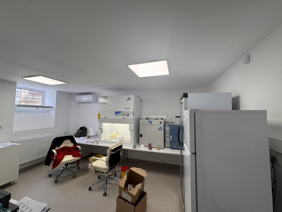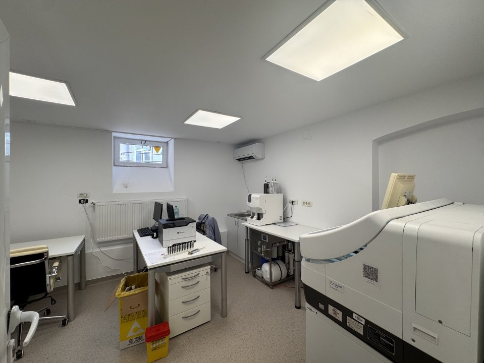 Demisol (137,85 mp): lumină naturală, compartimentare pentru cabinete, laborator, etc.